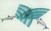 Le dauphin émet un signal qui va toucher sa cible , rebondir dessus , et revenir .Le signal , ou son (clics) est émis par des sacs d'airs situés des deux côtés du conduit nasal et débouchant dans l'évent;